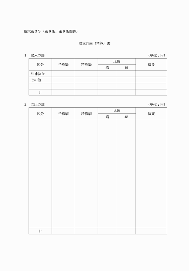 (2) 収支計画書(様式第3号)又はこれに代わる書類